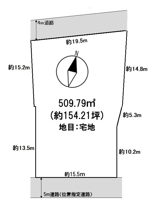 北4m公道 間口19.5m / 南5m私道 間口15.5m