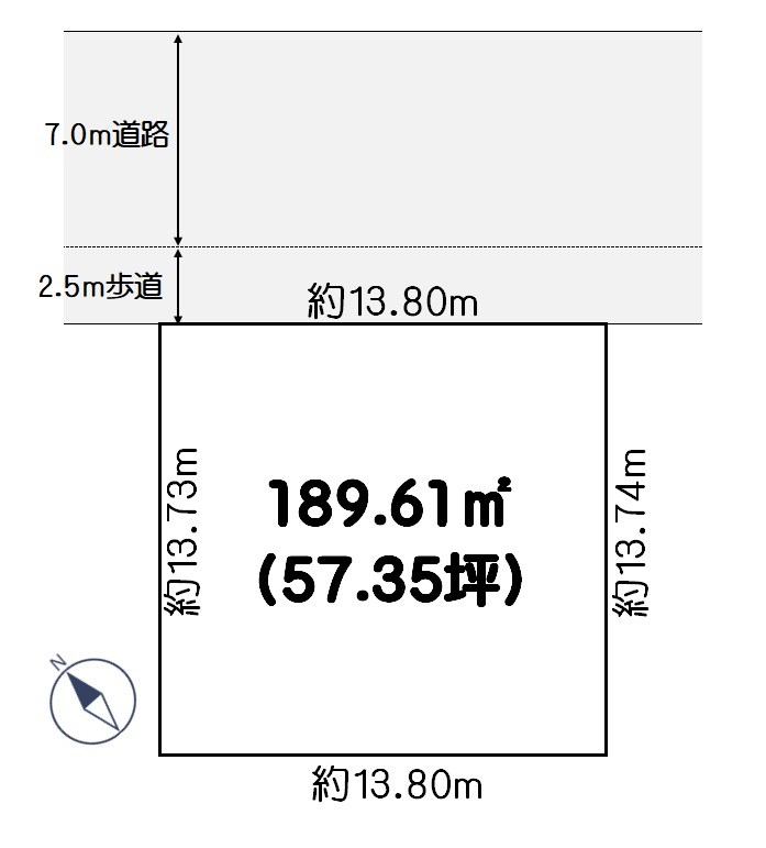 - 北東9.5m公道 間口13.8m