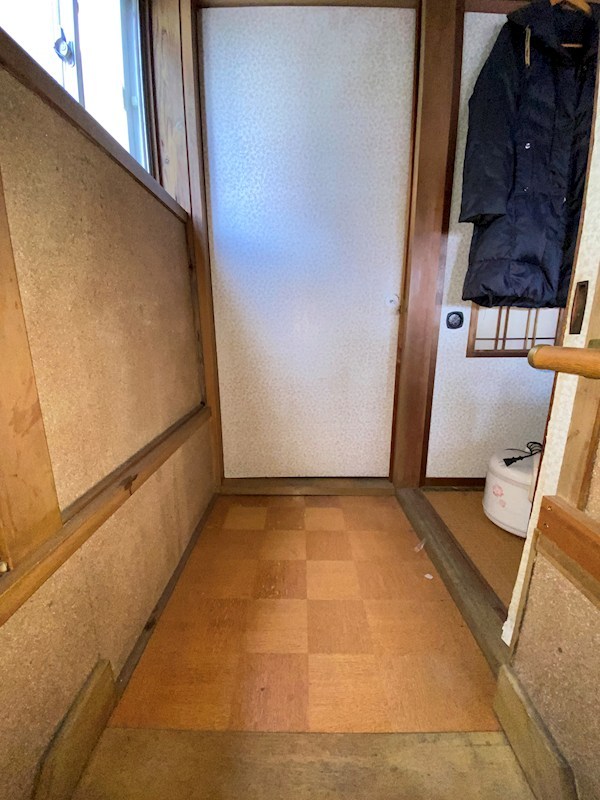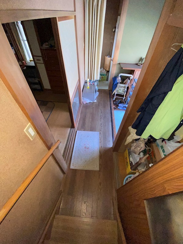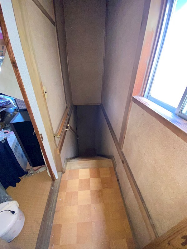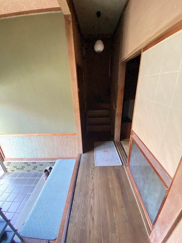 階段の降り口から玄関方向を撮影しました。