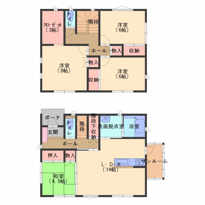 IHクッキングヒーター  システムキッチン  食器洗浄乾燥機  省エネ給湯器  オール電化  TVインターホン  複層ガラス  クローゼット  押入  階段下収納  オートバス  シャワー付洗面台  トイレ2ヶ所  温水洗浄便座  風呂一坪以上  浴室に窓  サンルーム  リビングの隣和室  玄関ポーチ