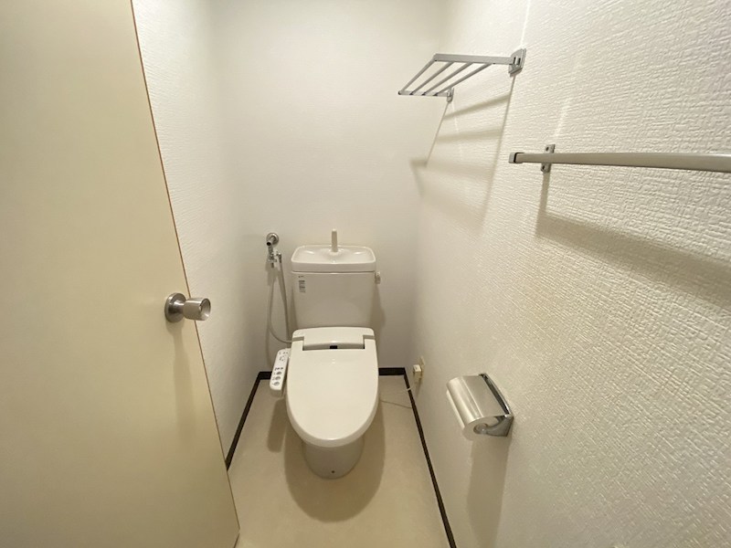 タオル掛けやトイレットペーパーを置く台が備え付けてあります。