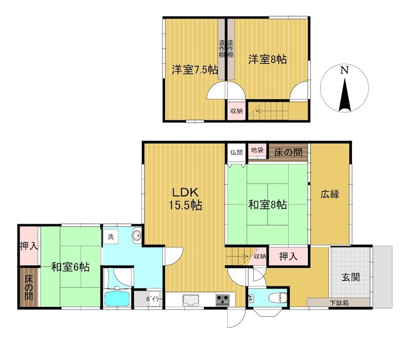 - 2F以上 キッチンに窓 勝手口 灯油ボイラー フローリング 室内洗濯機置場 シューズボックス 押入 収納有 洗面台