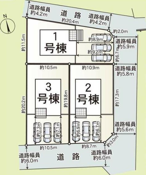 - 東5.8m公道 間口6.7m / 北4.2m公道 間口20.4m