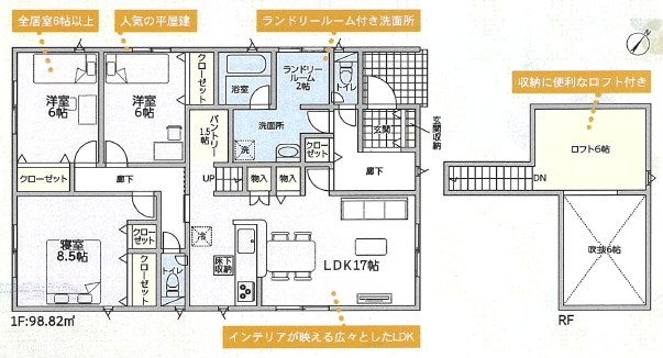 - 閑静な住宅街 並列3台可 舗装駐車場 陽当たり良好 3口以上コンロ IHクッキングヒーター キッチンに窓 システムキッチン 対面式キッチン 省エネ給湯器 オール電化 TVインターホン クッションフロア フローリング 室内洗濯機置場 全居室フローリング 複層ガラス クローゼット オートバス シャワー付洗面台 トイレ2ヶ所 温水洗浄便座 追い炊き風呂 風呂一坪以上 浴室に窓 ロフト 玄関ポーチ 寝室8畳以上
