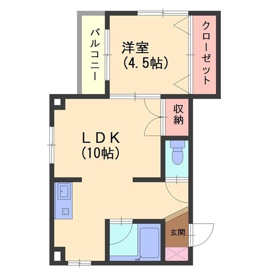 | 間取 | 1LDK ( LDK10帖 ・洋室4.5帖 ) | 専有面積 | 32.6m² |