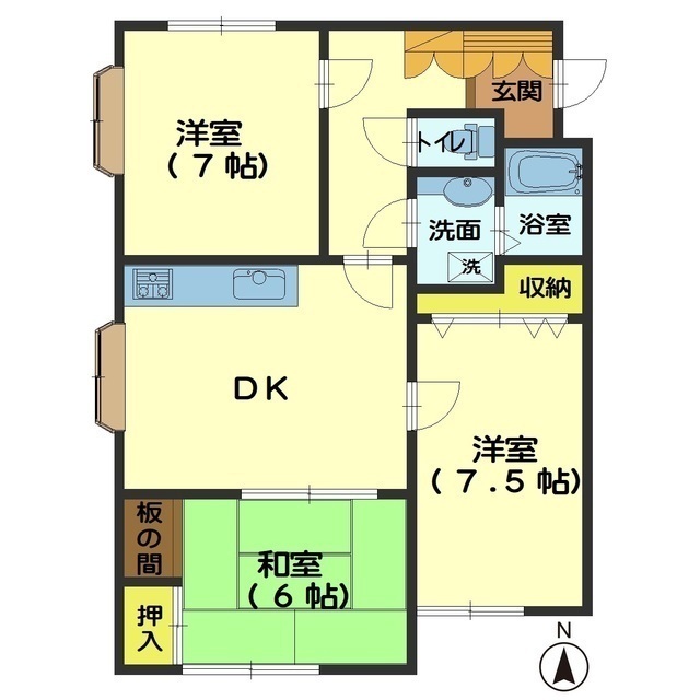 - 3DK ( 洋室7帖 ・洋室7.5帖 ・DK7.5帖 ・和室6帖 )