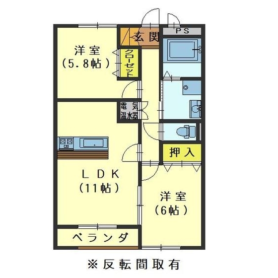 | 間取 | 2LDK ( LDK11帖 ・洋室6帖 ・洋室5.8帖 ) | 専有面積 | 56.99m² |