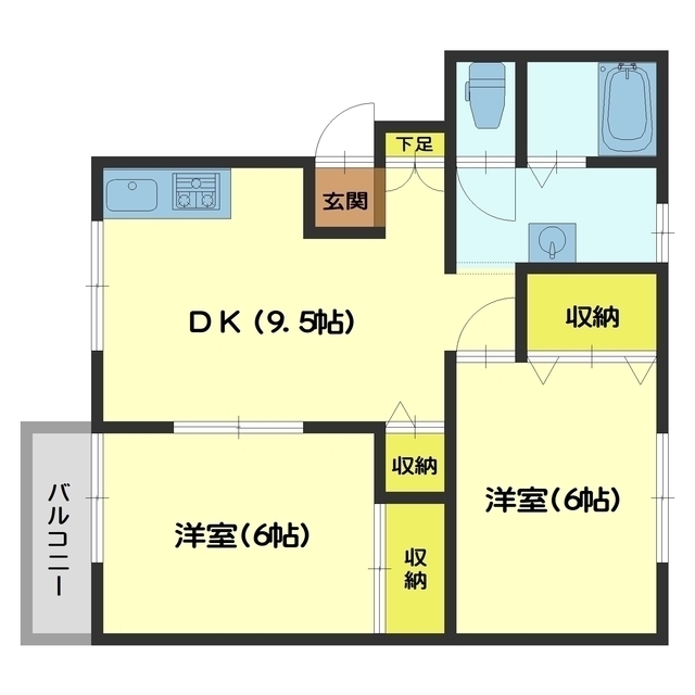 - 2DK ( DK9.5帖 ・洋室6帖 ・洋室6帖 )