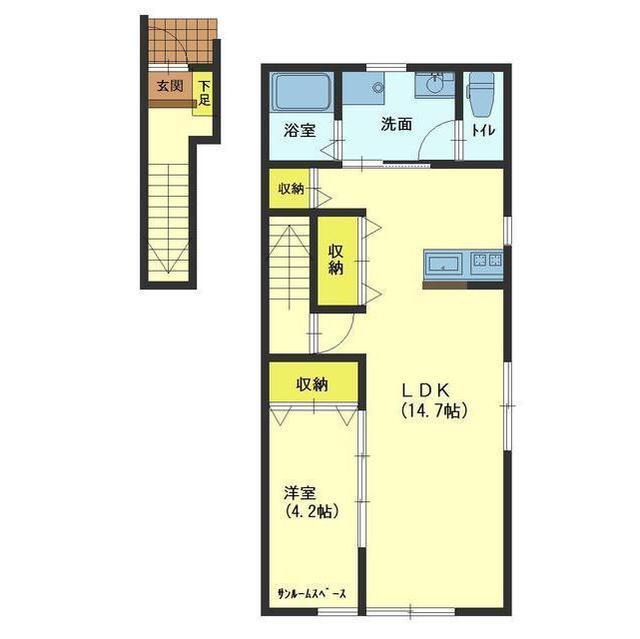 - 1LDK ( LDK14.7帖 ・洋室4.2帖 )
