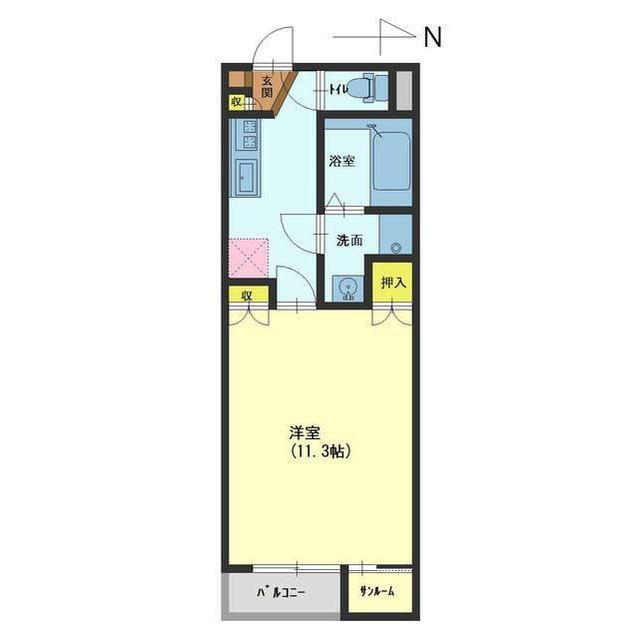 | 間取 | 1K ( 洋室11.3帖 ) | 専有面積 | 34.61m² |