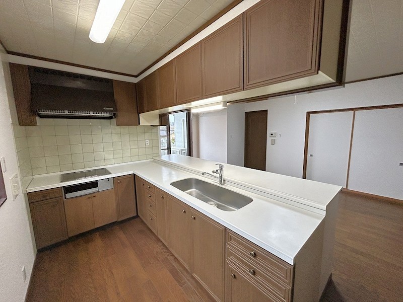 - 2面採光 陽当たり良好 3口以上コンロ IHクッキングヒーター L字型キッチン キッチンに窓 対面式キッチン オール電化 2世帯向き インターホン フローリング クローゼット シューズボックス 押入 全居室収納 ダウンライト 全室照明付き