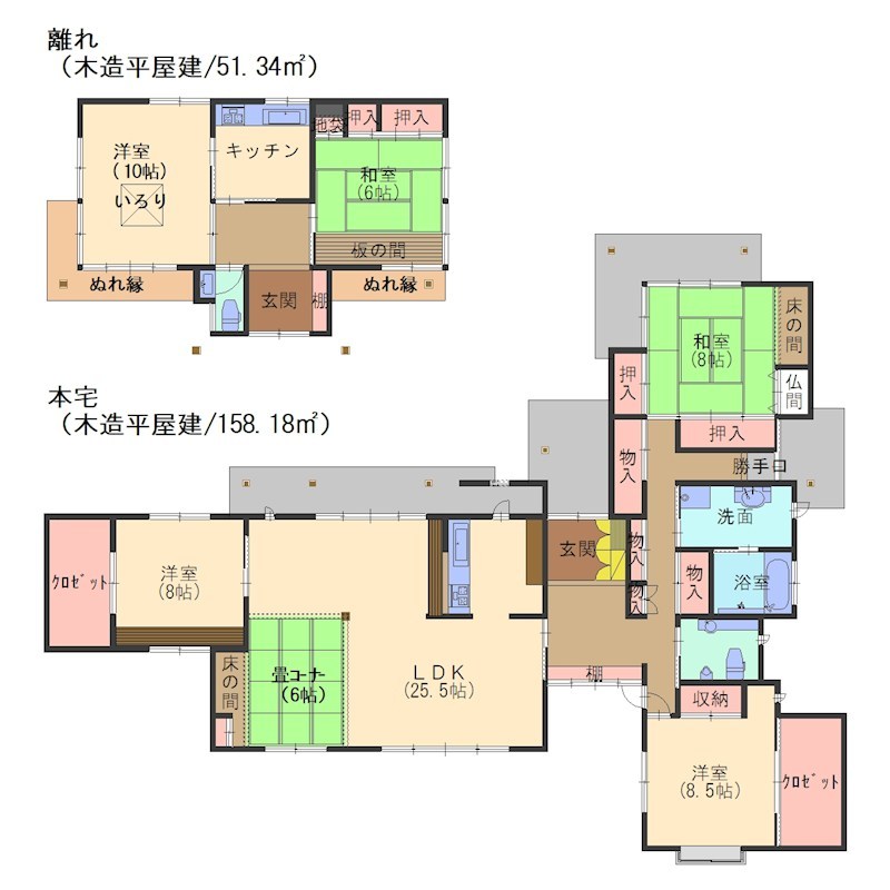 - 売買対象には、付属建物の離れ部分も含まれます。進入路の通路部分は、隣接の方と共有にて所有しております。