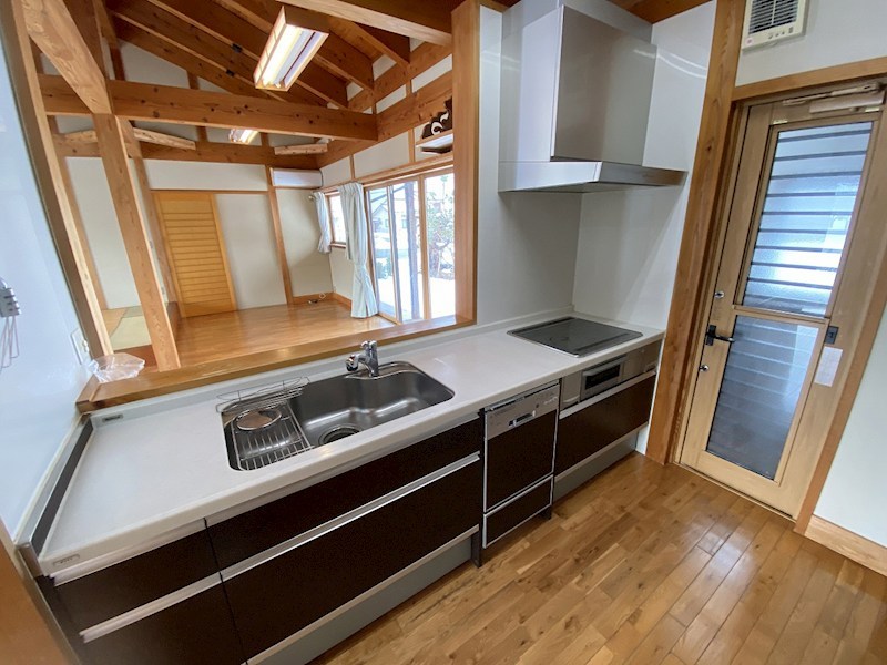 食洗機付きのシステムキッチン。対面キッチンで家族の様子を見ながらお料理できます。