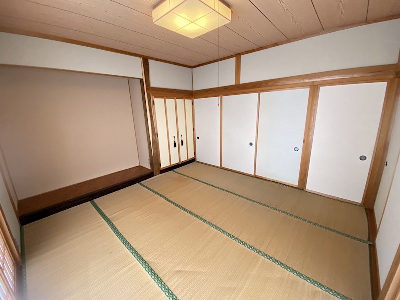離れの和室です。6帖畳+2帖板の間で約8帖の広さがあります。