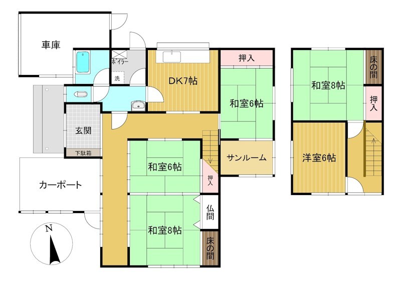 車庫  照明付き  キッチンに窓  勝手口  灯油ボイラー  押入
