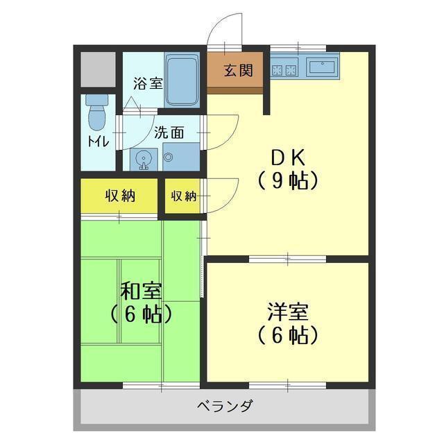 | 間取 | 2DK ( 和室6帖 ・洋室6帖 ) | 専有面積 | 45.45m² |