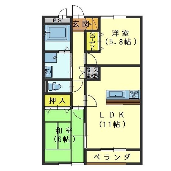 - 2LDK ( LDK11帖 ・洋室5.8帖 ・和室6帖 )
