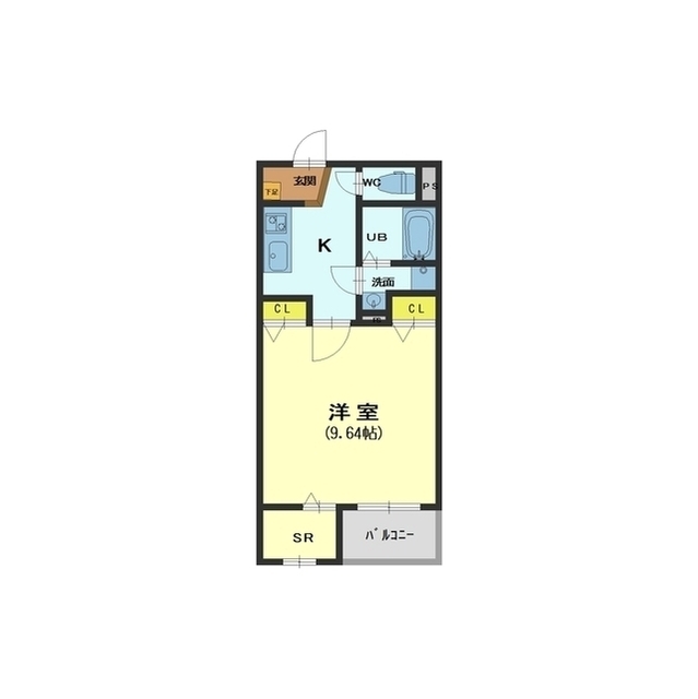 | 間取 | 1K ( 洋室9.64帖 ) | 専有面積 | 33.08m² |