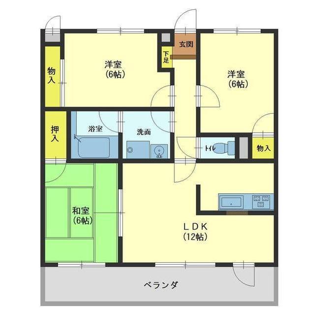 - 3LDK ( LDK12帖 ・洋室6帖 ・洋室6帖 ・和室6帖 )